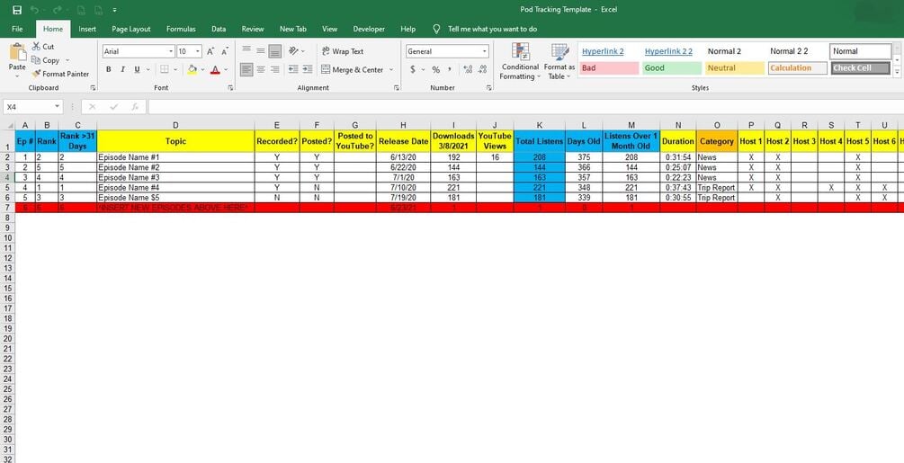 Spreadsheet to track Podcast Downloads and Analytics. Easy to use template.